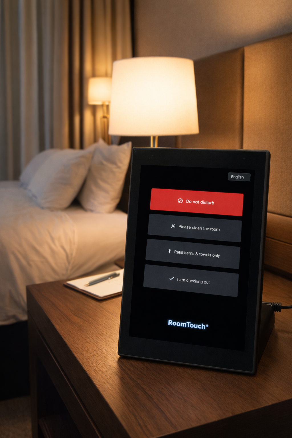 RoomTouch® ersetzt Türhänger, Telefonate und Zettel durch klare digitale Gästesignale im Zimmer und einen Live-Status für Ihr Team.